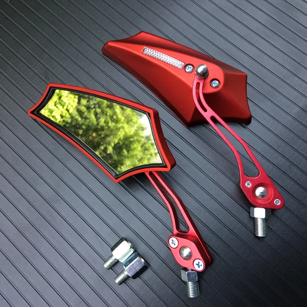6. tem duas especificações de parafuso (o tamanho do parafuso do espelho retrovisor é de 10 mm e o tamanho do parafuso adaptador é de 8 mm), ajuste universal para a maioria das motocicletas e scooters.