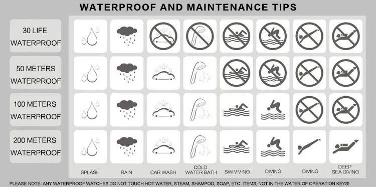 O relógio 3bar à prova d'água pode ser usado para lavar as mãos sem água quente/morna, não pode tomar banho, nadar, etc.